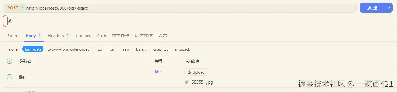 接收身份证图片并进行OCR识别,有一定的识别失败率。