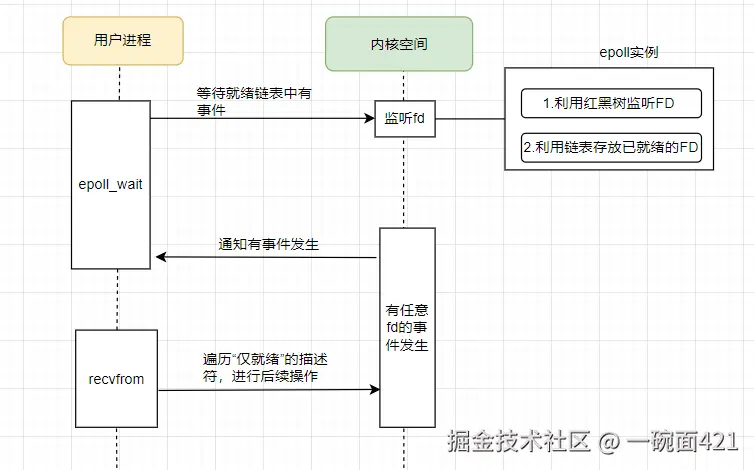 * 但我们仍需手动调用 recvfrom 将数据从内核拷贝到用户空间。