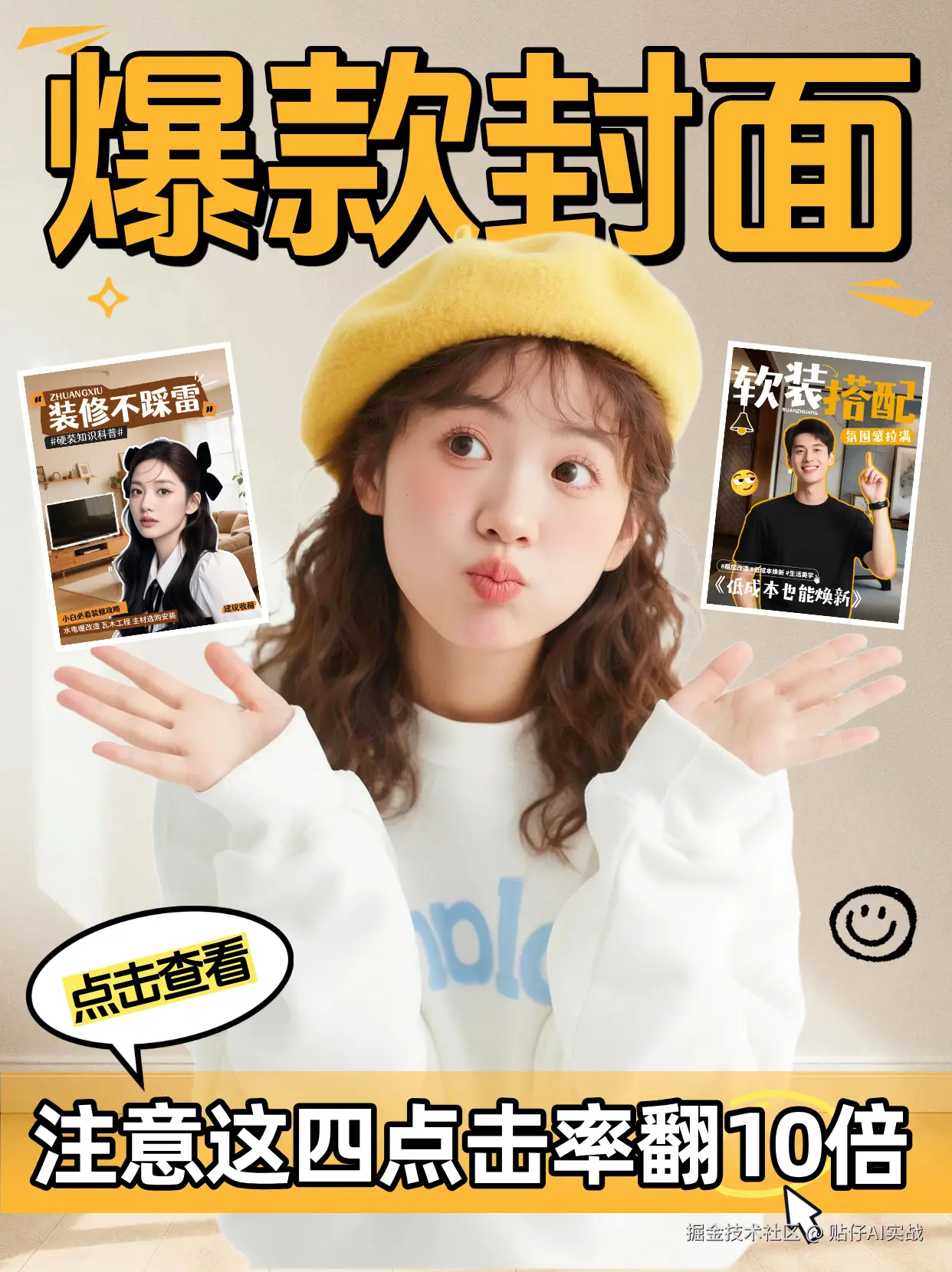 把想参考的小红书爆款封面上传到编辑器,用图文分层拆分“文字”、“人物”和“装饰元素”等,把人物换成自己或模特,再改改标题,专属你的爆款封面就搞定啦~