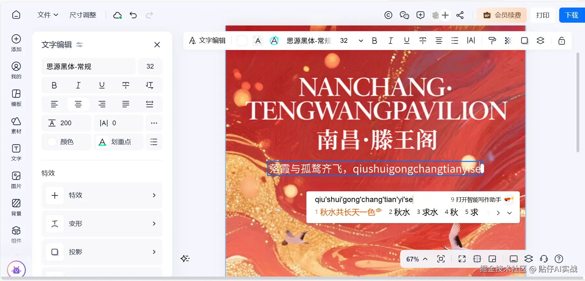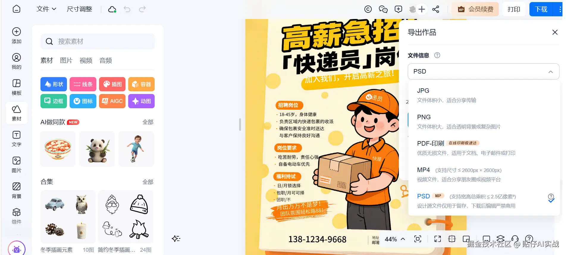 如果你的实际需求是快速出设计、并且需要频繁修改优化,这种AI生成图文分层可进一步编辑的方式确实更能省时间!