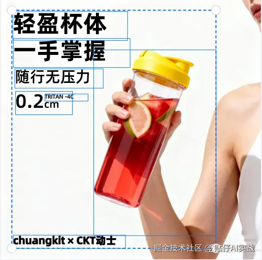 我想把这张图片转成图文分层的格式,修改文字,把主体替换成我们自家的产品,