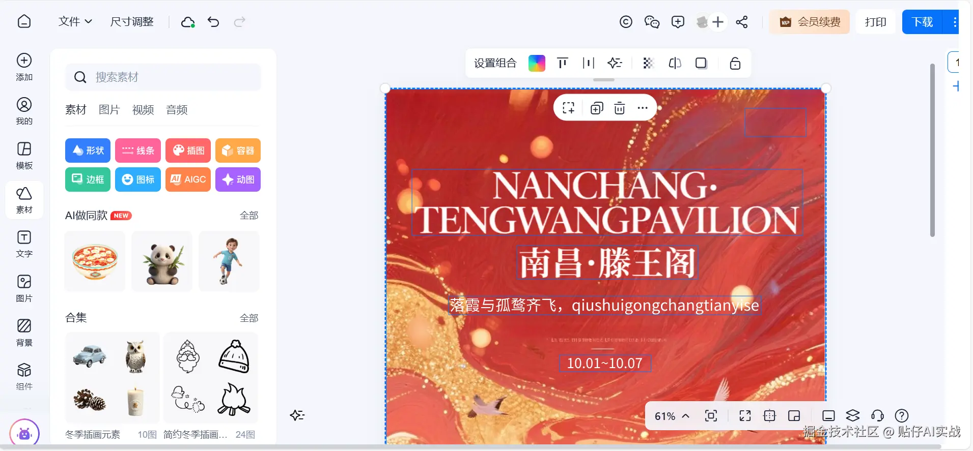 刷社交媒体时看到了一张创意很好的海报,想直接借用它的排版构图生成自己的海报,但是重头开始做太麻烦......