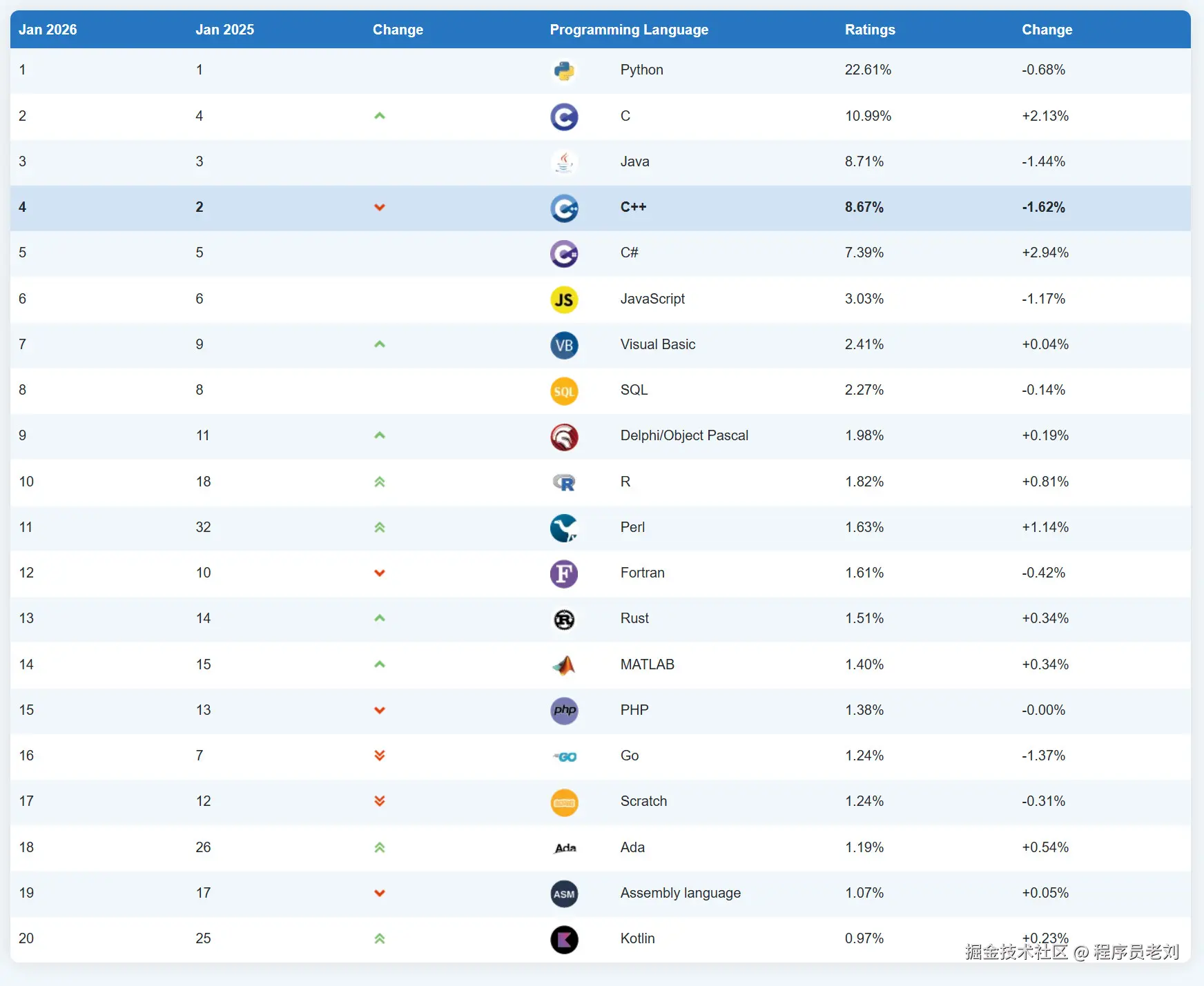 最近TIOBE在2026年一月的编程语言排名出来了。