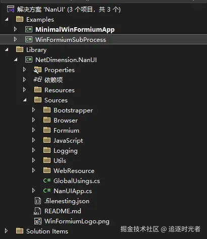 - NanUI 并未直接调用 CEF 的 C 接口,而是基于 Xilium.CefGlue 这是一个高质量的 .NET 封装库,将 CEF 的 C++ API 转换为 C# 可调用的托管接口。