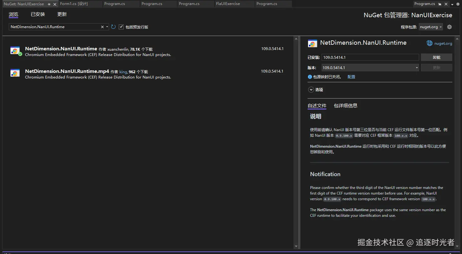 安装 NanUI 所依赖的 Chromium Embedded Framework 依赖包 NetDimension.NanUI.Runtime: