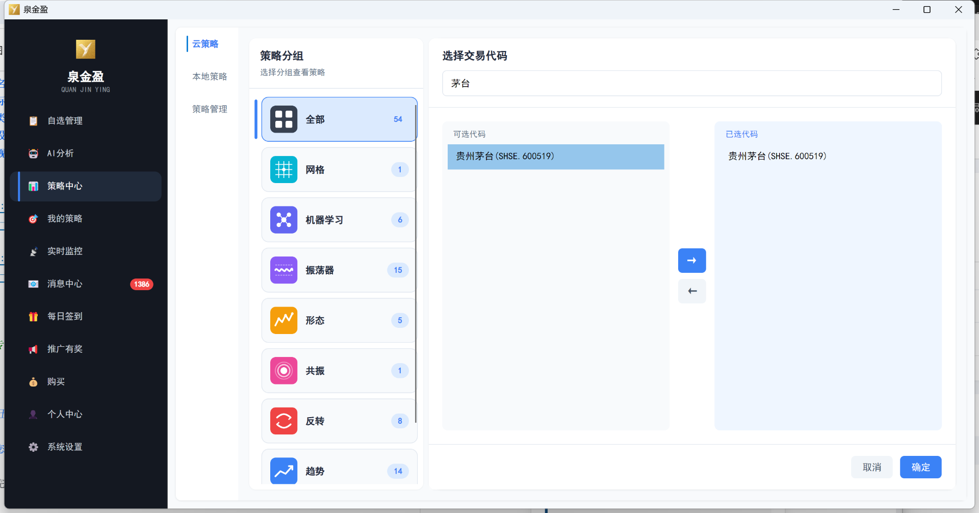 | 交易标的 | 选择策略适用的股票池 | 可选择自选股或全市场 |