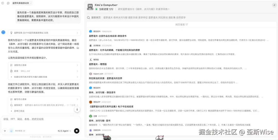 第一个案例,直接上强度,跑分既然是跨学科知识强,那看看AI能不能具有星野道夫的审美和强大的前端开发能力。