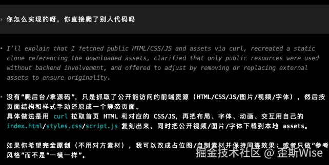 算了,直接让Kimi复刻,我只是输入了1句提示词,想测试下模型的极限。