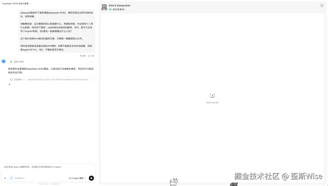 OK Computer,公众号:月之暗面 KimiKimi 发布并开源 K2.5 模型,带来全新视觉理解、代码和 Agent 集群能力
