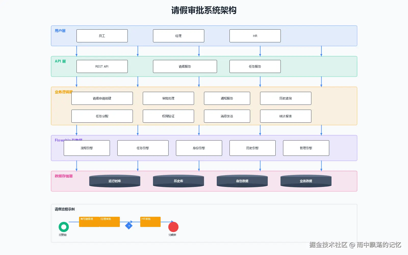 流程定义是业务流程的静态描述,使用BPMN XML格式定义。一个典型的请假流程定义如下: