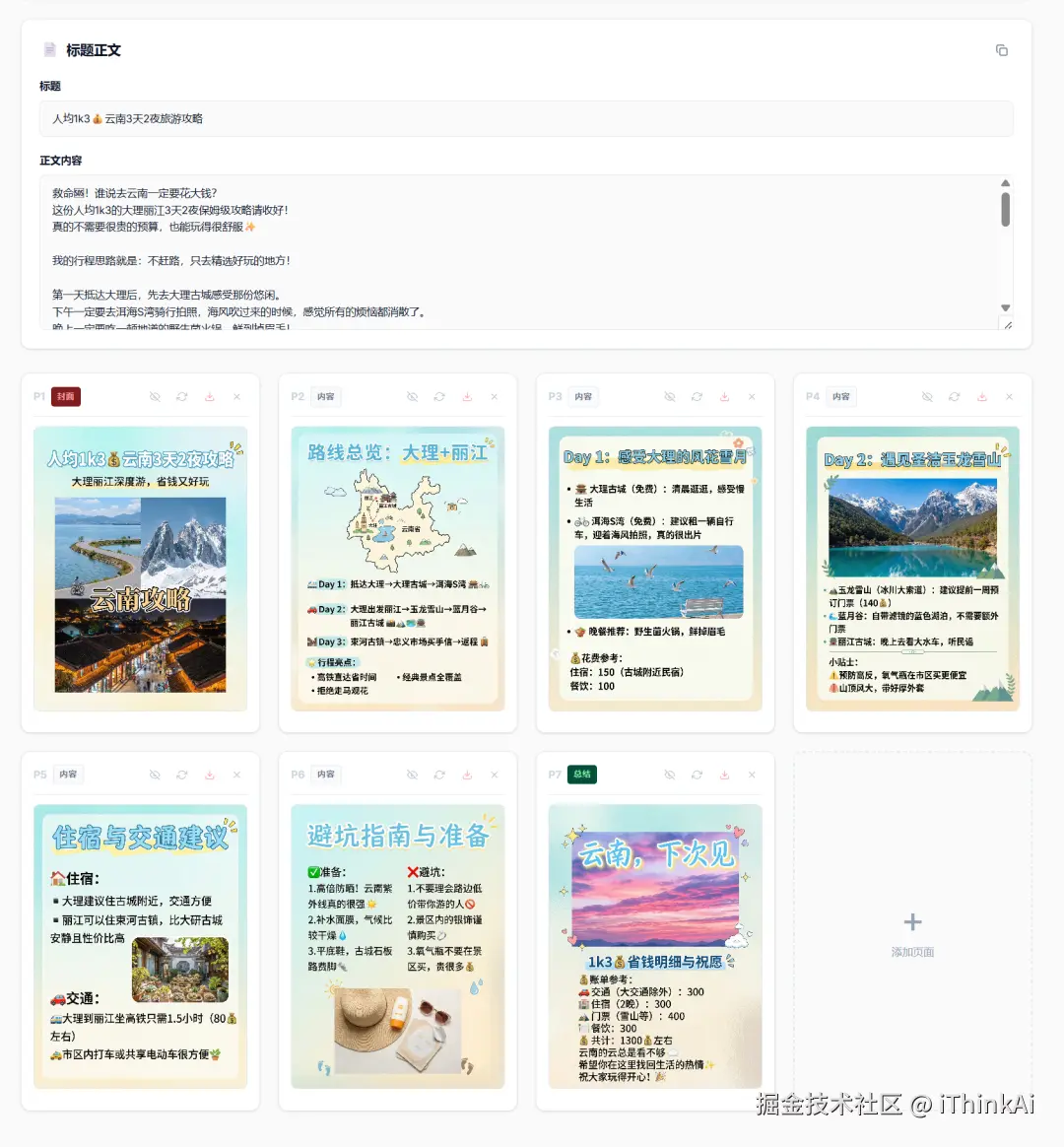 系统会根据小红书特有的“情绪价值”语感,自动生成具备点击诱饵潜力的文案。以及每张图的图片内容描述