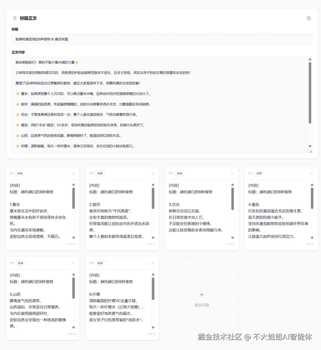 第二步:生成对应的标题、正文以及每一张图的图片描述。 系统会瞬间拆解出标题、正文,最关键的是,它会把 9 宫格里每一张图该放什么、文字怎么排版都写得清清楚楚。你可以随时手动微调,确保文案更有“人感”。
