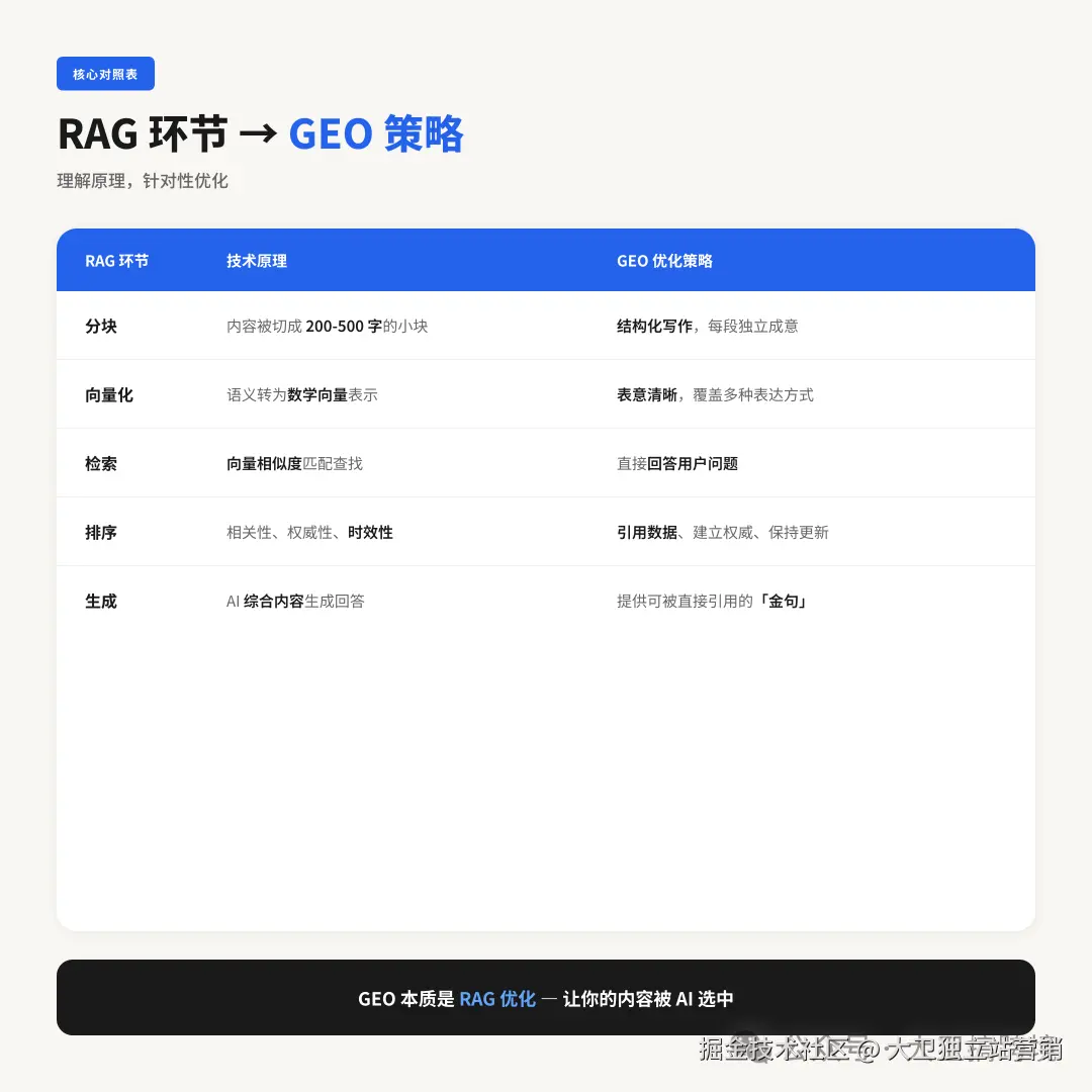 三、GEO 的本质:让你的内容「被 RAG 选中」