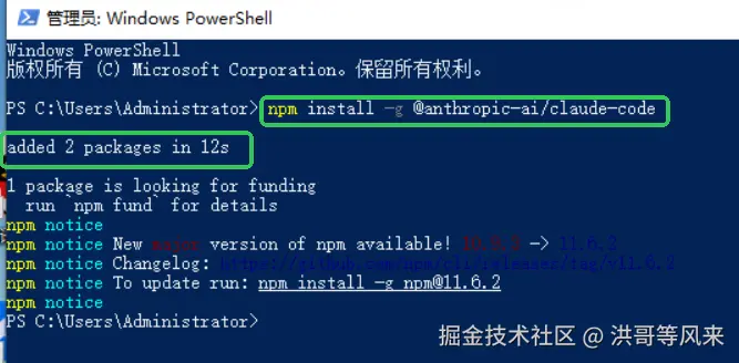 在 PowerShell 中使用 npm 工具安装 ClaudeCode: