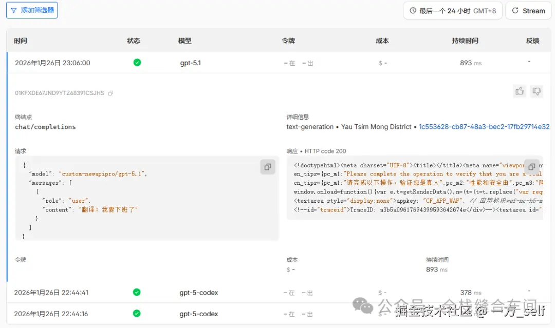 这样的话,我们只需要配置一下就能代理请求某个自定义的大模型,我们可能配置多个custom-、每个custom可以有多个模型,这样的话对接就简单很多,还能看到每次自己请求的内容和ai返回的内容是啥。