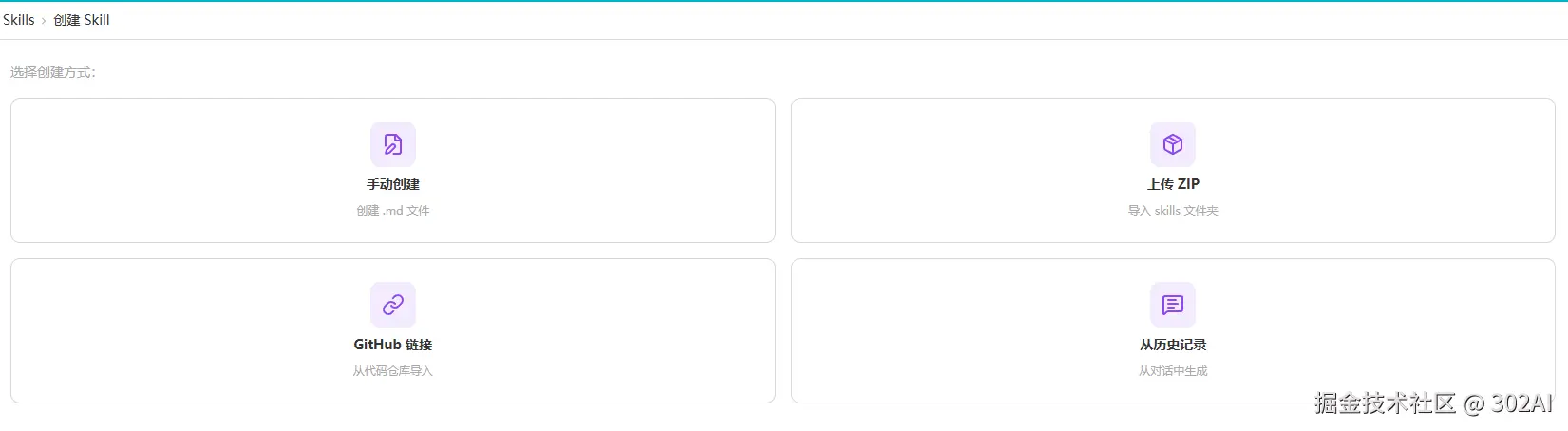 302.AI支持4种模式对Skills进行安装,这里我们使用GitHub链接的方式。