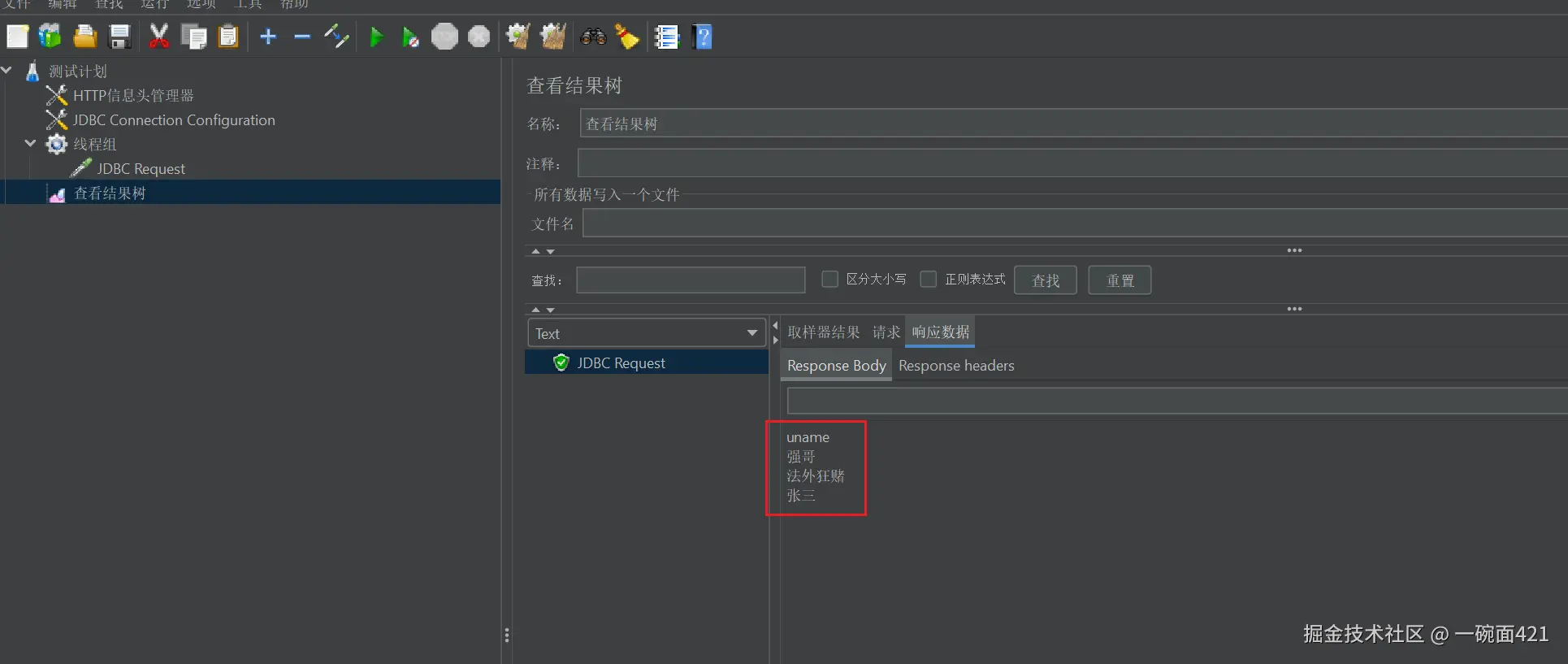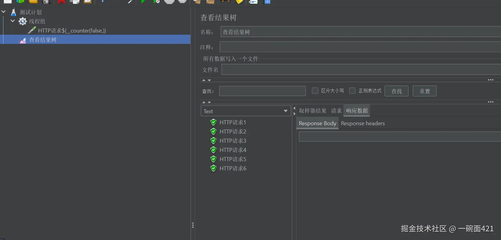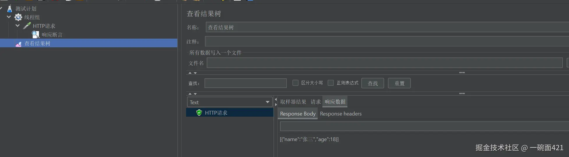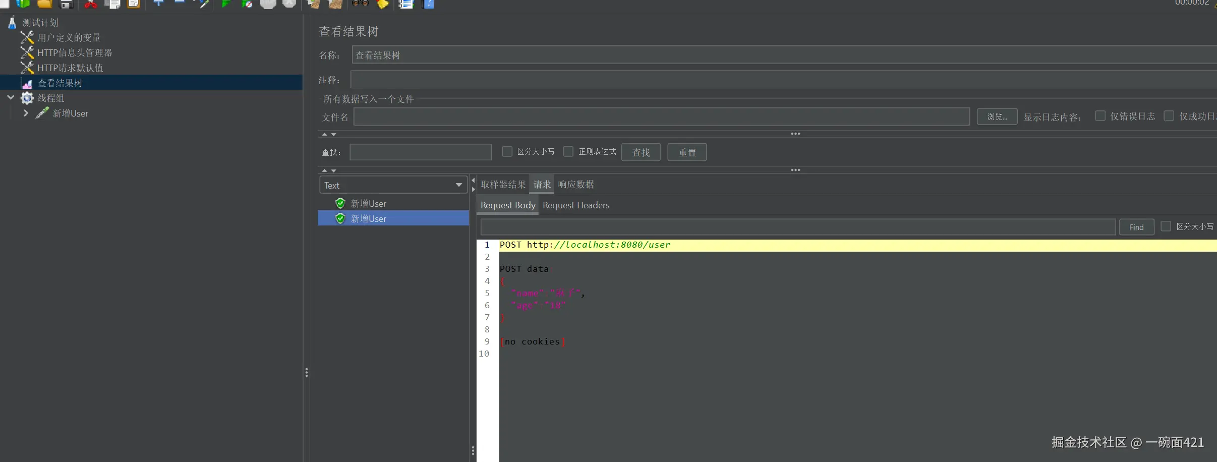 - 把查看结果数拖到线程组内,再次点击运行,只会查看当前线程组内的请求结果
