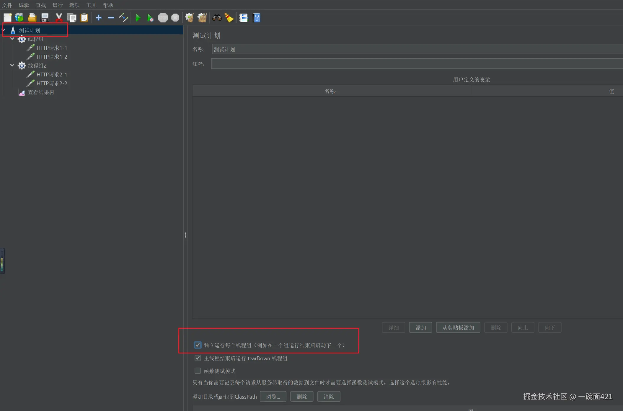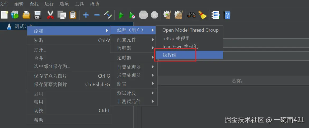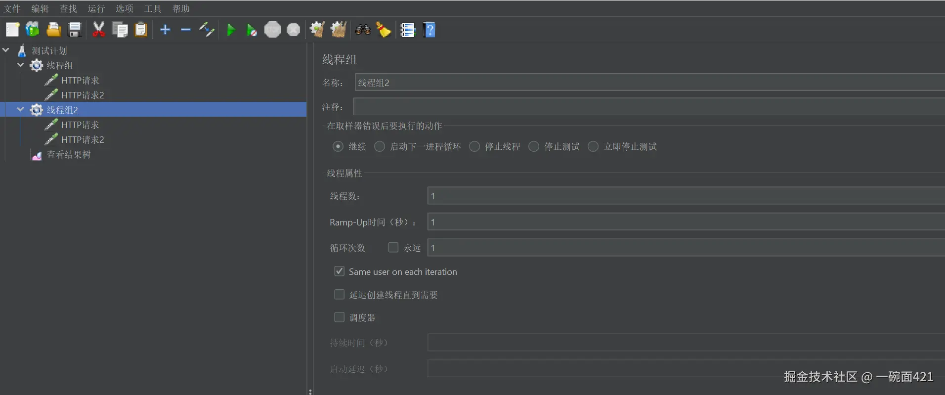 - 点中线程组,ctrl+c 。再点中执行计划 ctrl+v,复制出一个线程组2
