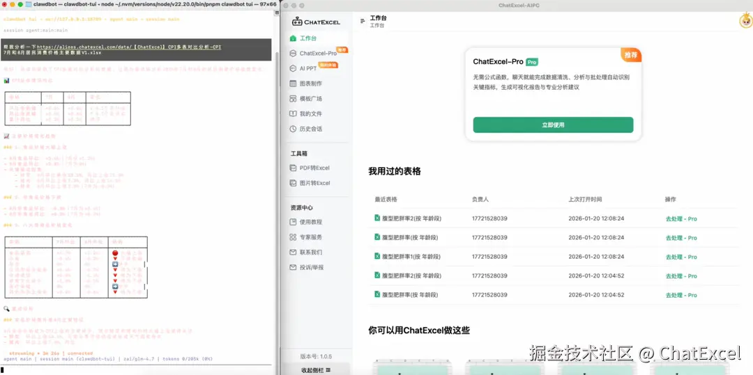 如果说 Clawdbot 解决了“在哪里用 AI”,那么元空AI(ChatExcel)则解决了“通过自然语言如何处理复杂办公任务”。两者的结合,让你的 Agent 从一个“聊天搭子”变成了一个稳定可以被托付任务的系统 , 之所以 Clawdbot 接入 ChatExcel 能产生如此大的爆发力,归功于 ChatExcel 极其深厚的全链路处理能力。