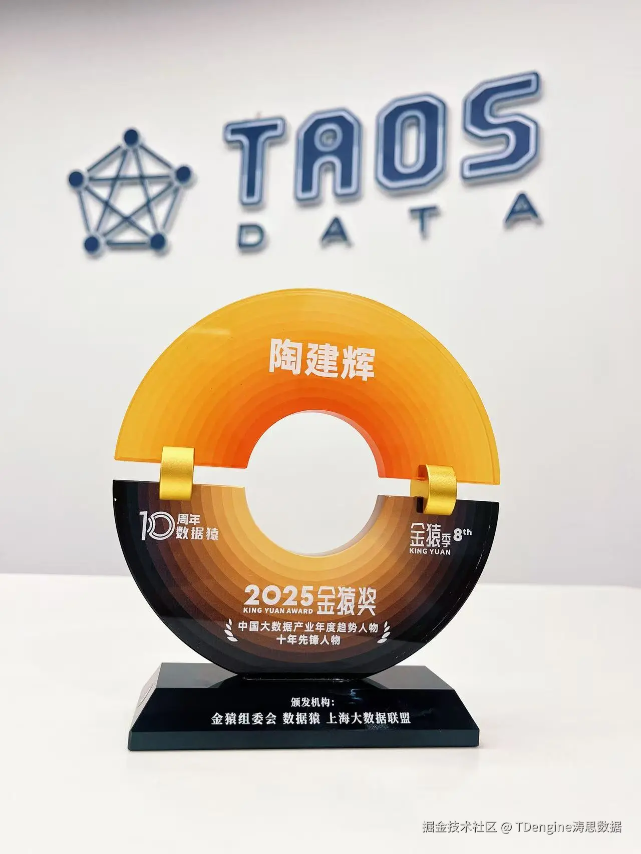 近日,在上海举行的 2025 第八届金猿大数据产业发展论坛上,TDengine 创始人 & CEO 陶建辉入选「2025 中国大数据产业年度趋势人物 · 十年先锋人物」榜单。该榜单由金猿组委会联合数据猿、上海市数商协会、上海大数据联盟等机构发布,面向中国大数据产业发展第一个十年,对在关键技术方向和产业实践中产生持续影响的代表人物进行集中评选。
