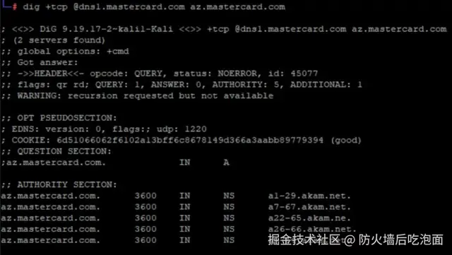 2025年1月,安全研究者PhilippeCaturegli发现支付巨头万事达卡存在近五年的DNS配置错误——系统管理员误将核心DNS服务器地址写为“akam.ne”(正确应为“akam.net”),该错误从2020年6月持续至2025年1月,期间未被发现。由于“akam.ne”域名未被注册,任何人都可通过注册该域名拦截万事达卡的网络流量,潜在风险极高。
