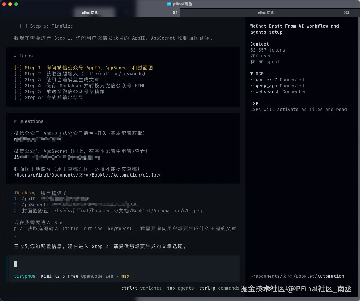 最后 这套半自动的还是有点麻烦 要写脚本 后来脑洞大开 整了一套 skill 在 opencode 中运行 只需要 告诉