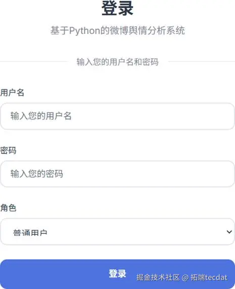 - 用户管理模块:实现用户注册、登录,管理员权限分级管理(普通用户仅可查看分析结果,管理员可管理数据与用户);