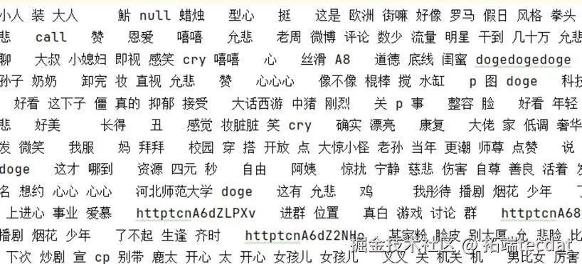 import reimport jiebaimport pandas as pd# 中文注释:导入依赖库,re用于正则去噪,jieba用于分词def data_denoising(text): """中文注释:数据去噪,去除HTML标签、超链接、无意义符号""" # 中文注释:正则表达式匹配HTML标签,省略部分特殊符号匹配规则 text = re.sub(r"<[^>]*>", "", text) # 去除HTML标签 text = re.sub(r"http[s]?://\S+", "", text) # 去除超链接 text = re.sub(r"[^\u4e00-\u9fa5\s\d]", "", text) # 保留中文、数字、空格 return text.strip()def jieba_cut(text): """中文注释:Jieba分词,拆分中文文本,去除停用词""" # 中文注释:加载停用词表,省略停用词表读取的详细代码 stop_words = set(pd.read_csv("stopWords.txt", encoding="utf-8-sig", header=None)[0]) words = jieba.lcut(text, cut_all=False) # 精确模式分词 # 中文注释:过滤停用词和单字,保留有效词汇 useful_words = [word for word in words if word not in stop_words and len(word) > 1] return useful_words# 中文注释:调用预处理函数,处理采集的微博数据if __name__ == "__main__": df = pd.read_csv("weibo_content.csv", encoding="utf-8-sig") df["清洗后内容"] = df["内容"].apply(data_denoising) # 去噪 df["分词结果"] = df["清洗后内容"].apply(jieba_cut) # 分词+停用词过滤 df.to_csv("weibo_processed.csv", index=False, encoding="utf-8-sig") print("数据预处理完成")