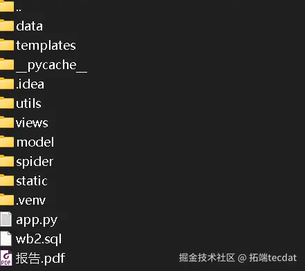 - MySQL:关系型数据库,用于存储采集的微博数据、用户数据,支持高效查询与持久化存储;