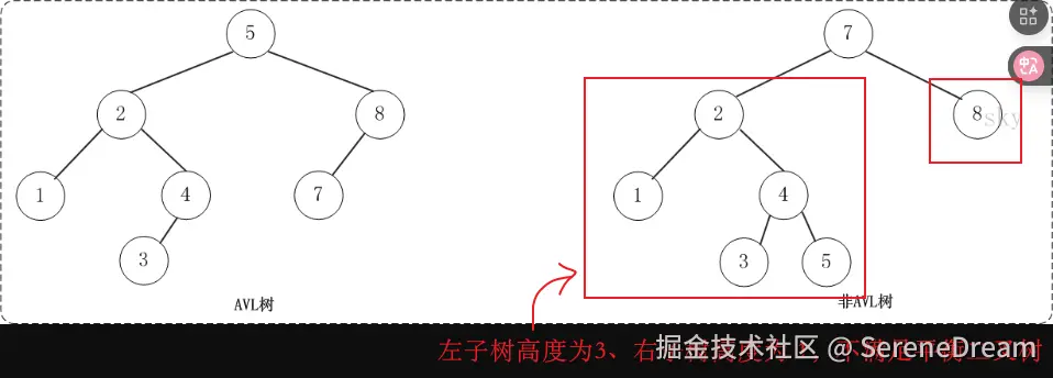 平衡二叉树要求,任何节点的两个子树的高度最大差为1。