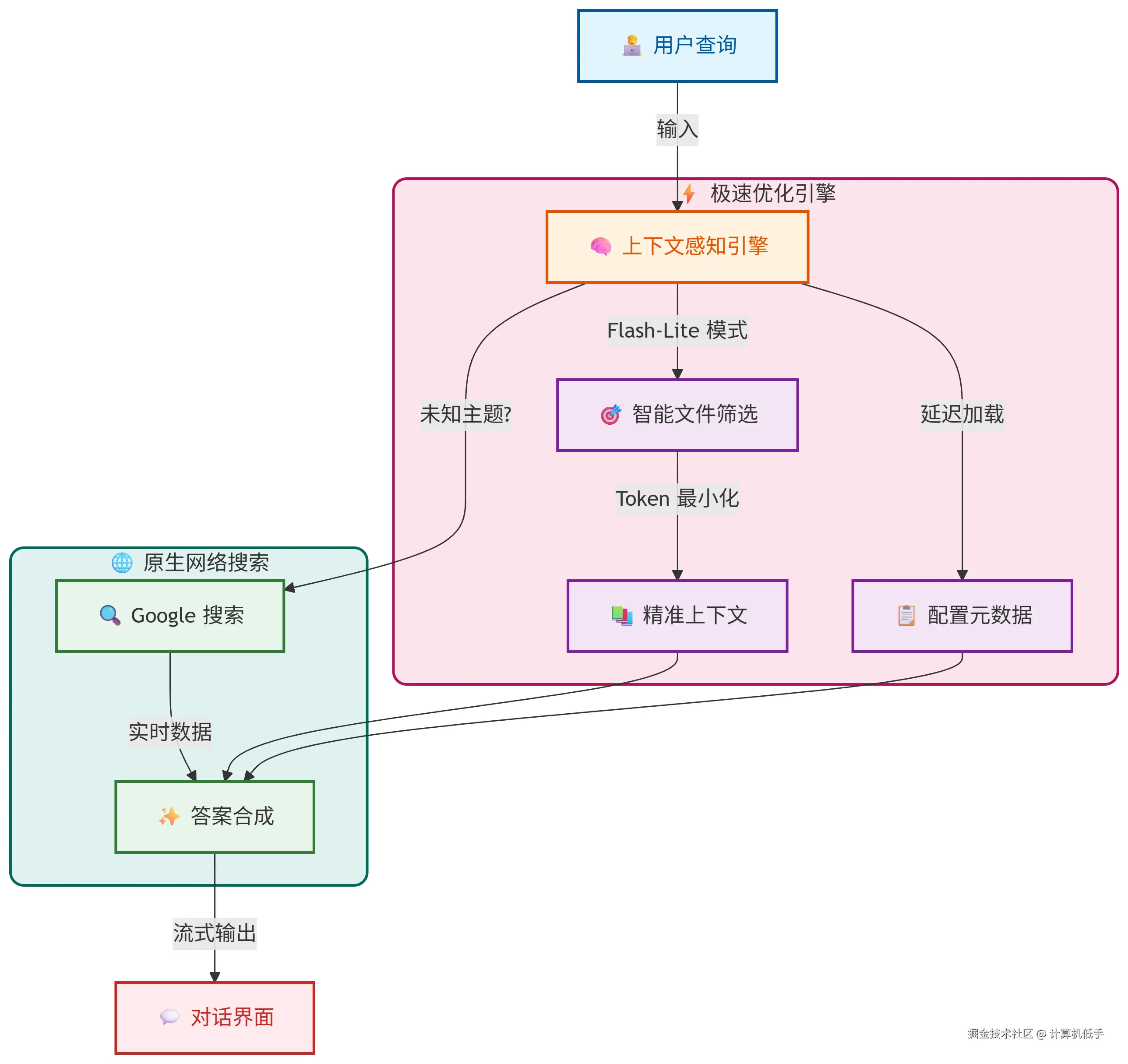 - 与传统RAG相比,它无需向量数据库,是基于缓存检索技术,安装部署使用更轻量、高效、智能 - 提供移动优先的 Web UI,可在线使用,支持 Mermaid 流程图、序列图等在线渲染展示