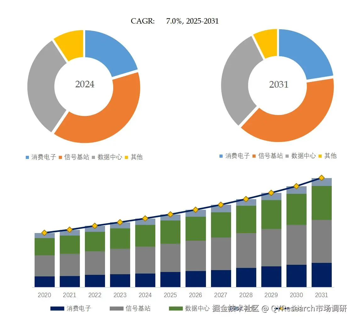 就产品类型而言,目前信号基站是最主要的需求来源,占据大约39.1%的份额。
