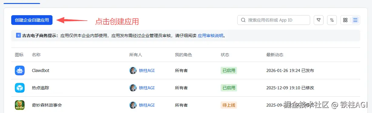 - 等待审核通过(小型企业通常立即通过),不勾选外部群使用是免审的,自己建的企业自己审核就行。