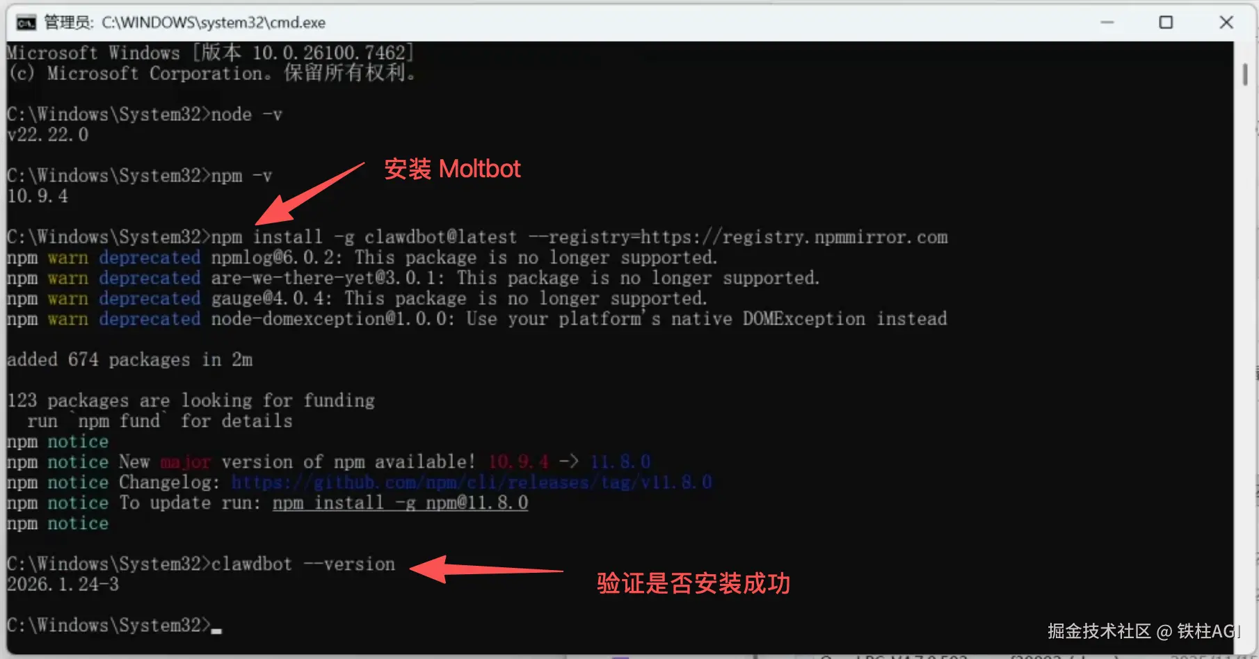 npm install -g clawdbot@latest --registry=https://registry.npmmirror.com