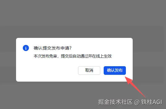 - 保存以后会弹窗提示是否要发布,选择确认发布