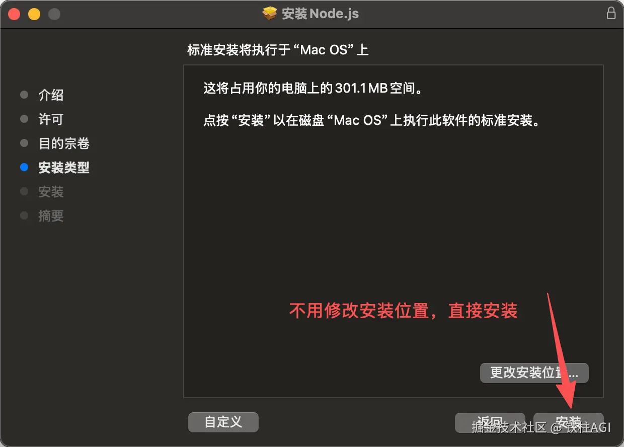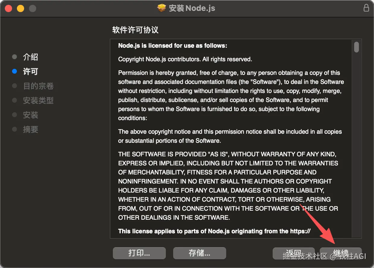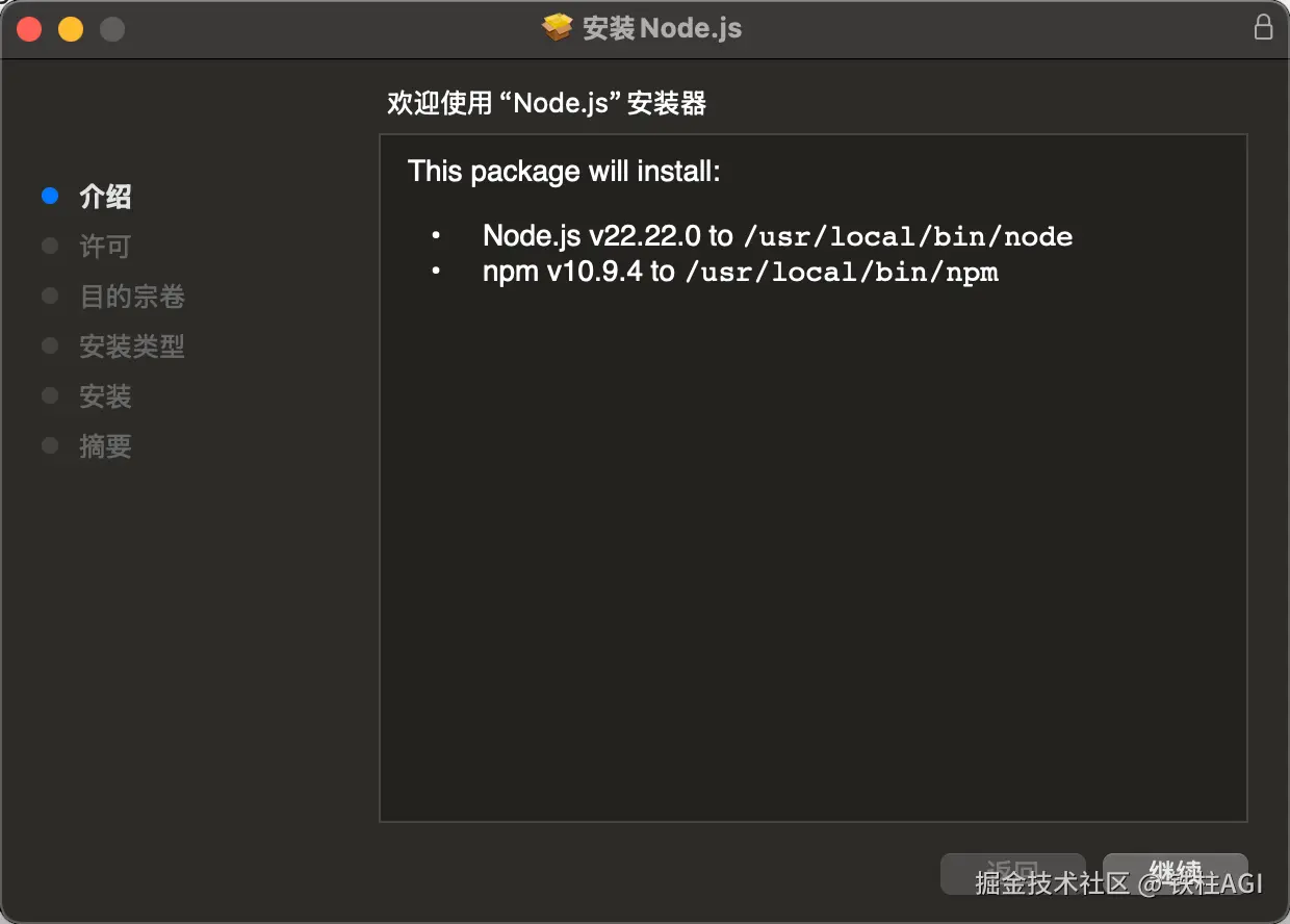 下载 macOS 安装包(根据芯片类型选择 22. x LTS 版本)
