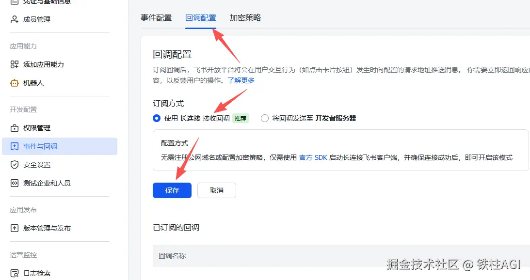 完成这几步以后回到飞书应用 第 4 步 完成后续配置