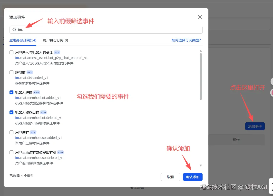 | 机器人进群 | im. chat. member. bot. added_v1 | 机器人被拉入群聊(可选) |