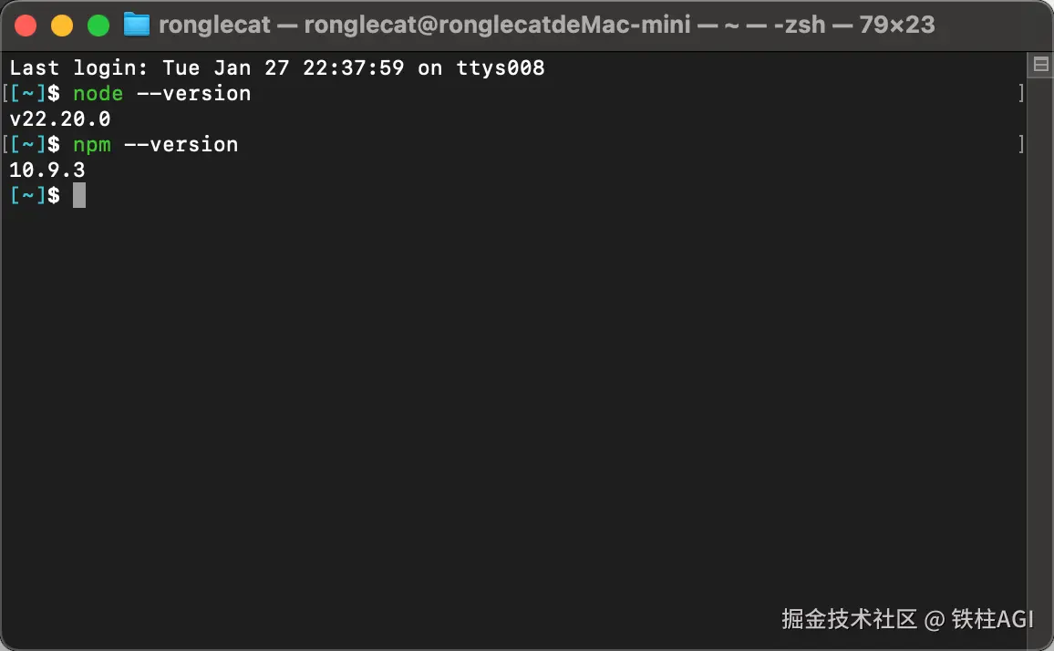 node --version # 应显示 v22.x.x