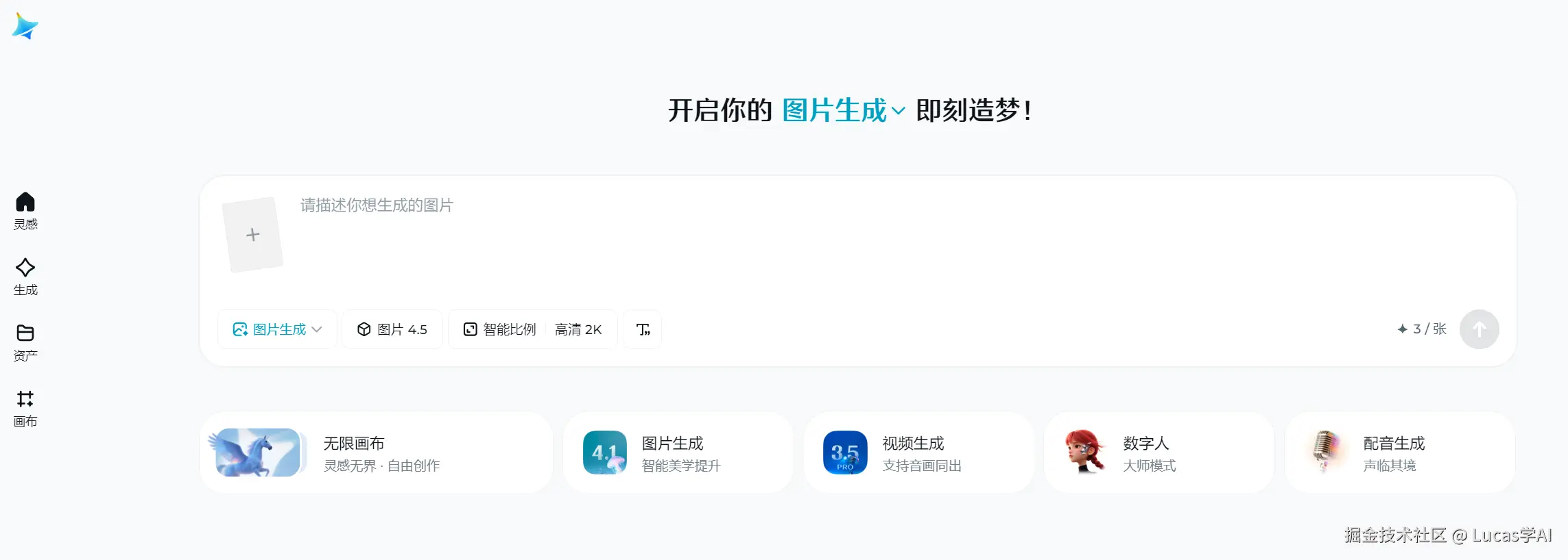 这里我选用的都是即梦最新的图片4.5模型,生成的图片分辨率高,稳定性强,而且中文口语化提示词就能输出稳定的结果。