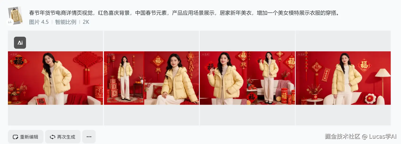 升级成“跑通一整套春节AI出图流程”。