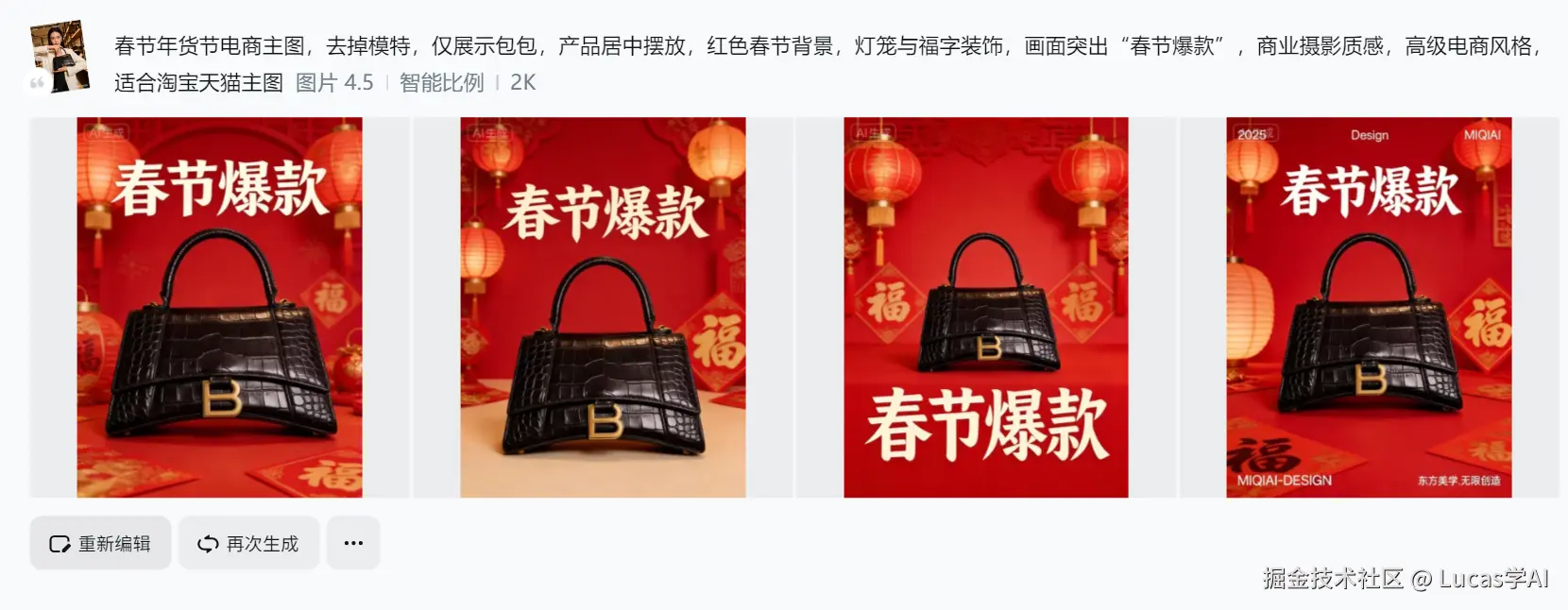 灯笼、福字、红包,这些元素非常适合AI理解和复用。
