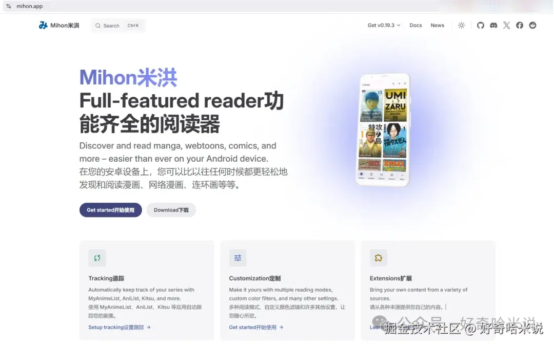 注意:Mihon是开源免费的APP,并未在 Google Play 和 App Store上架,请到 Github下载。