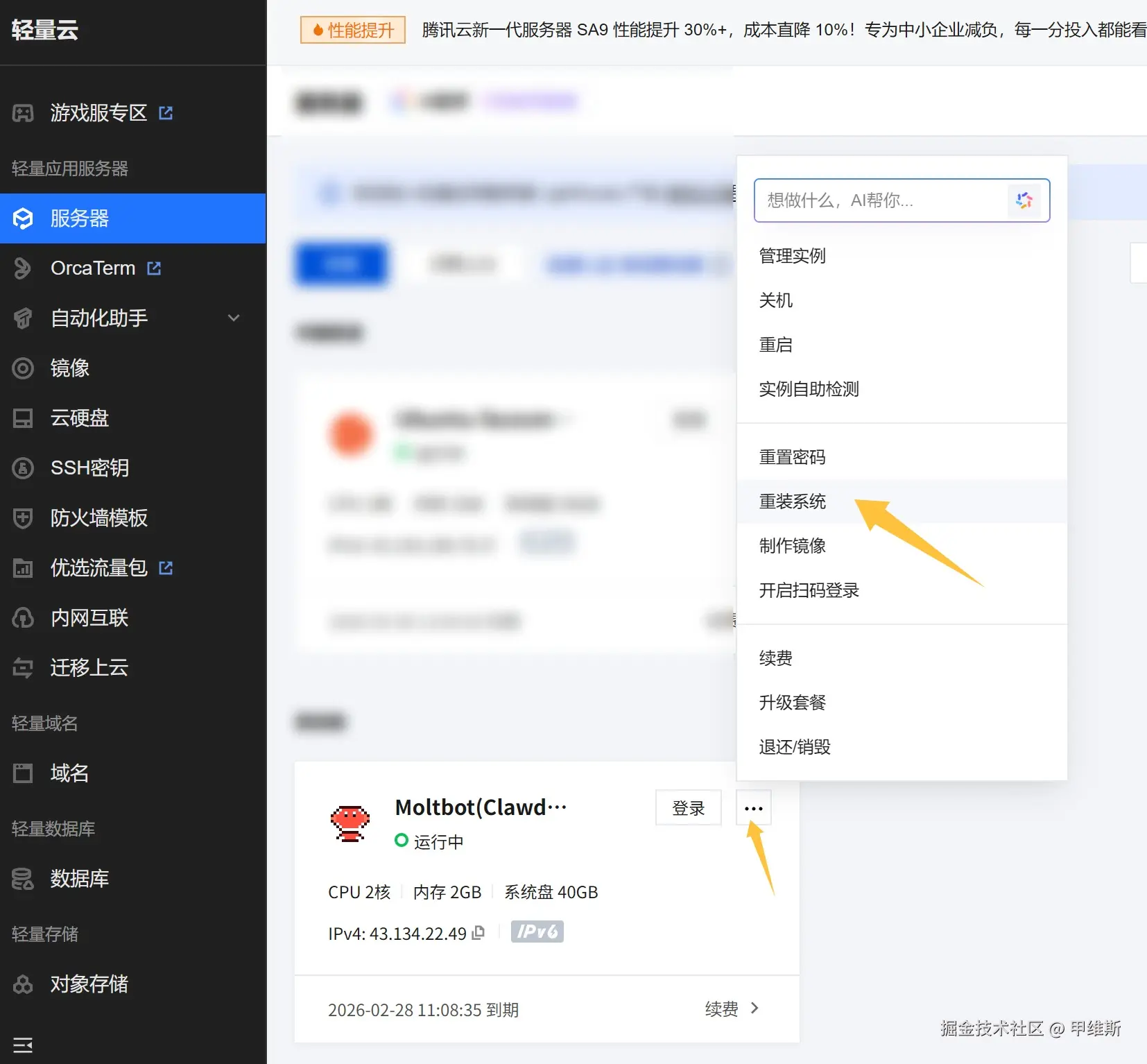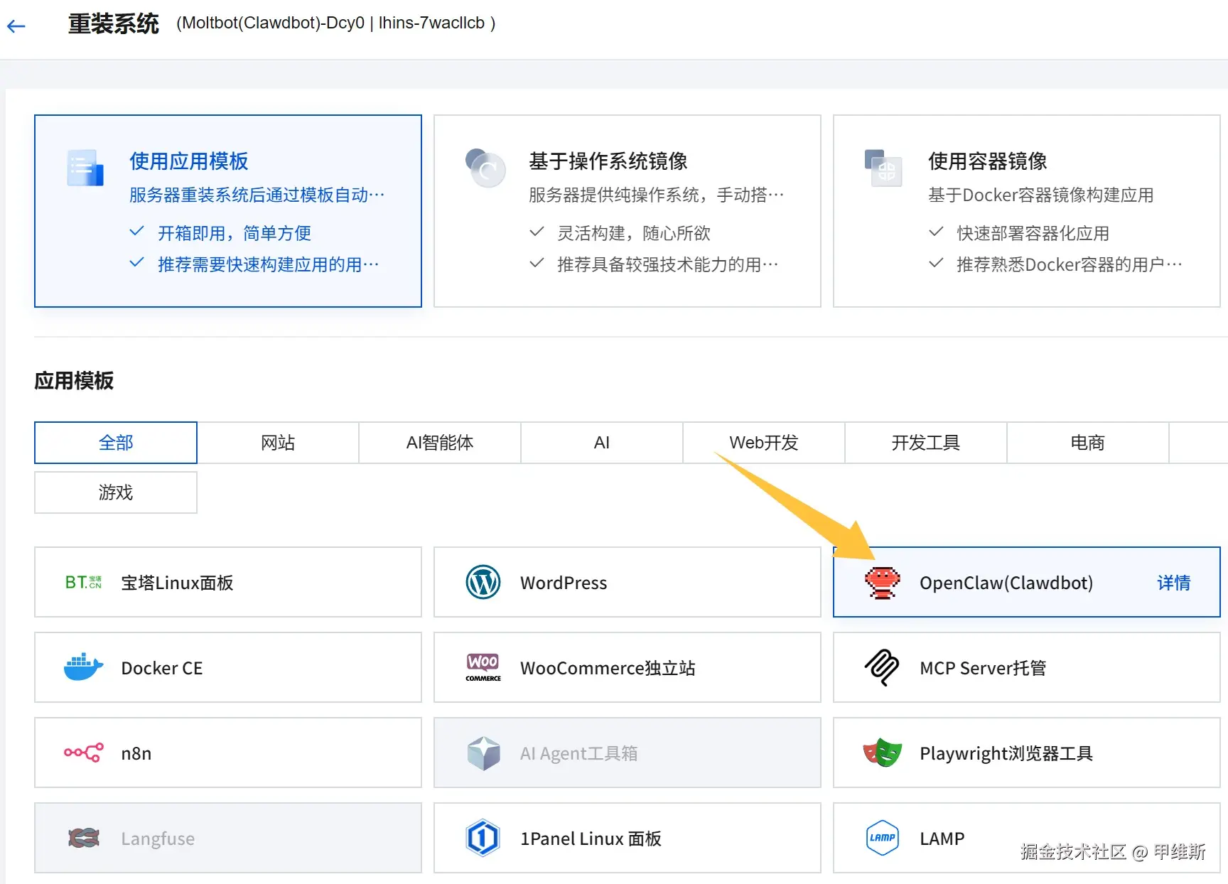 如果你本身有一个空闲的服务器,可以通过重装的方式,使用 ClawdBot 的镜像。