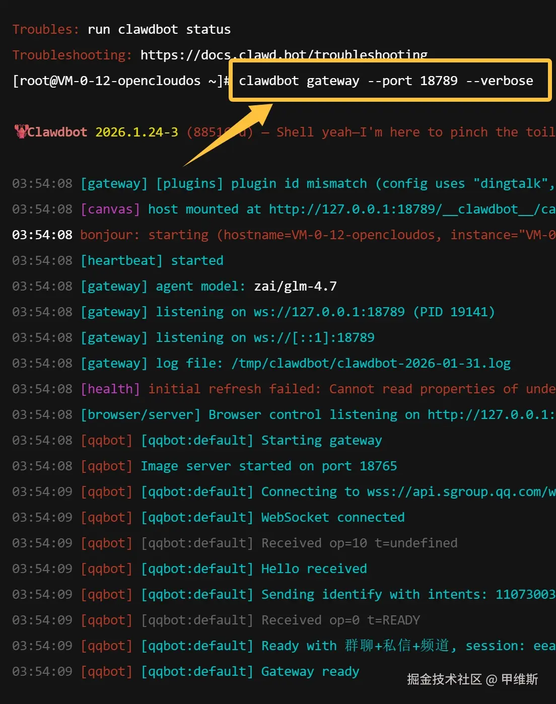 这个命令的意思,使用普通方式启动服务,端口为 18789。