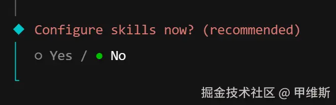 可以选择 No,先跳过。这种不着急,后面可以慢慢配置。