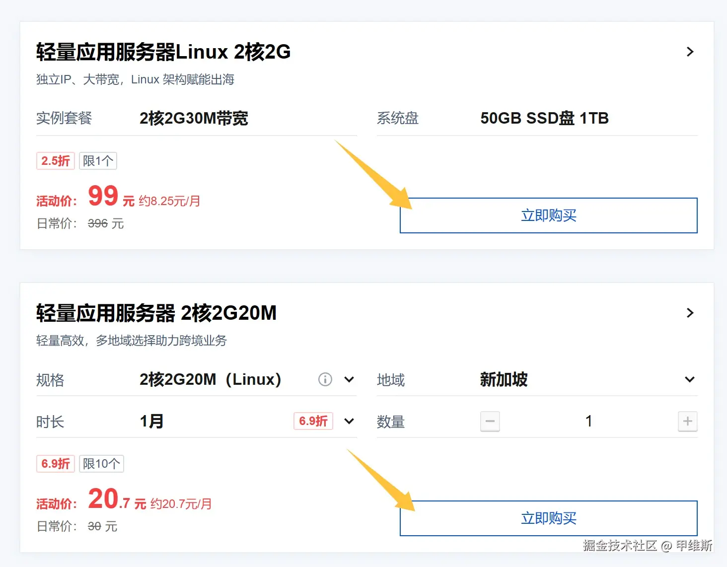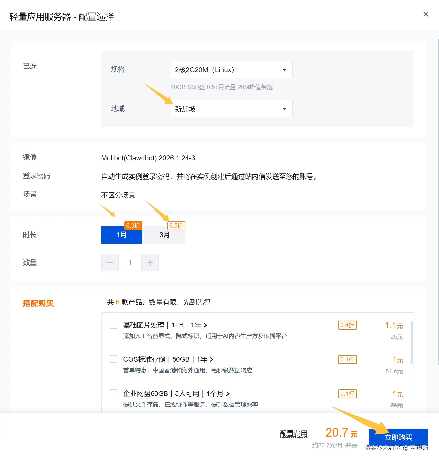 选好套餐后就可以进入购买页面了。这里没啥好说的,一般来说全部默认就好了。