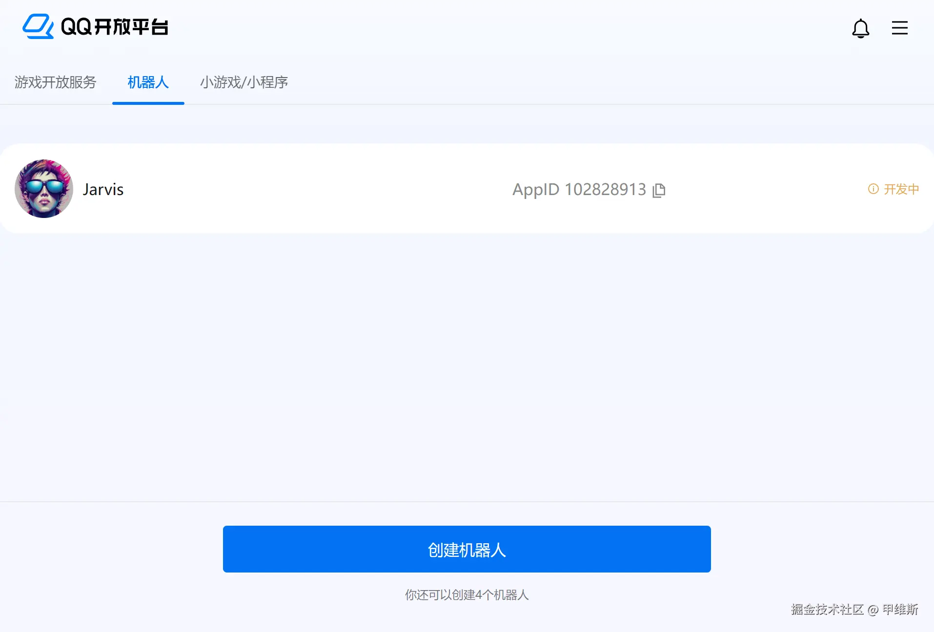 登录之后,找到机器人,然后创建一个机器人