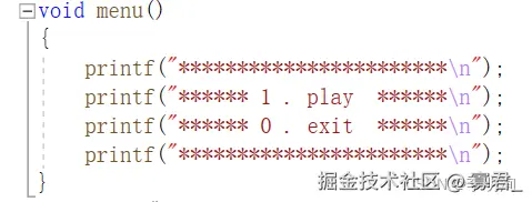 我们要写一个menu(菜单)函数,来决定要不要开始游戏。(写在test.c中)