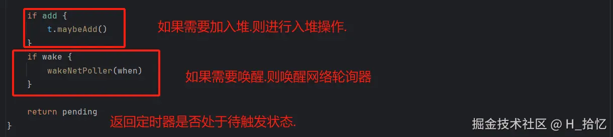 minWhenModified *:定时器桶的最小触发时间, *timerproc 会根据这个值决定休眠多久,若新 when 更小,需要唤醒 timerproc 重新计算休眠时间。